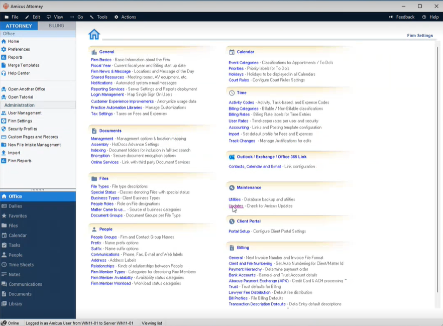 - To begin the process, click on Updates under the Maintenance section in Firm Settings.