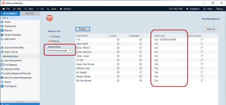 Anywhere, Amicus Client Portal.