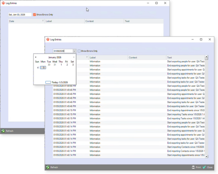 Calendar & Contact Sync Logs have been