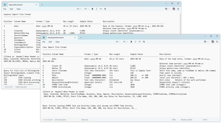 into Amicus via the desktop application