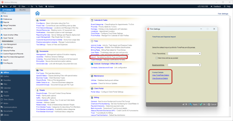the new links appear on the Time/Fee and