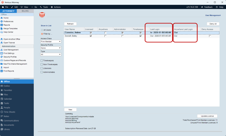 User Management makes it easier to track login data for